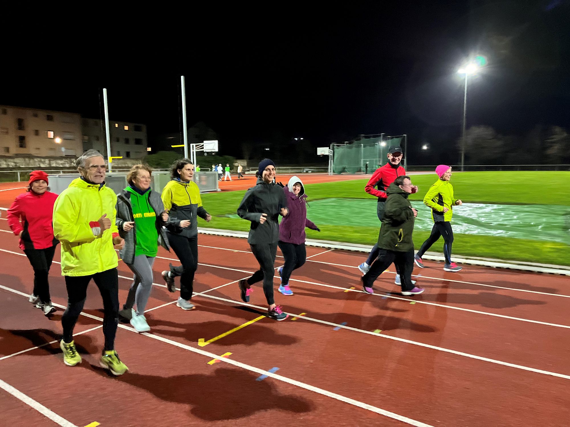 Innerhalb eines Lauftreffs geht es nach einer gemeinsamen Aufwärmphase in verschiedenen Tempogruppen los. Nach 45 Minuten treffen sich dann alle wieder auf dem Sportplatz - wie viel Kilometer jede:r Einzelne absolviert hängt von der individuellen Geschwindigkeit ab. Ist eine Tempogruppe zu langsam, geht man einfach in die nächste.