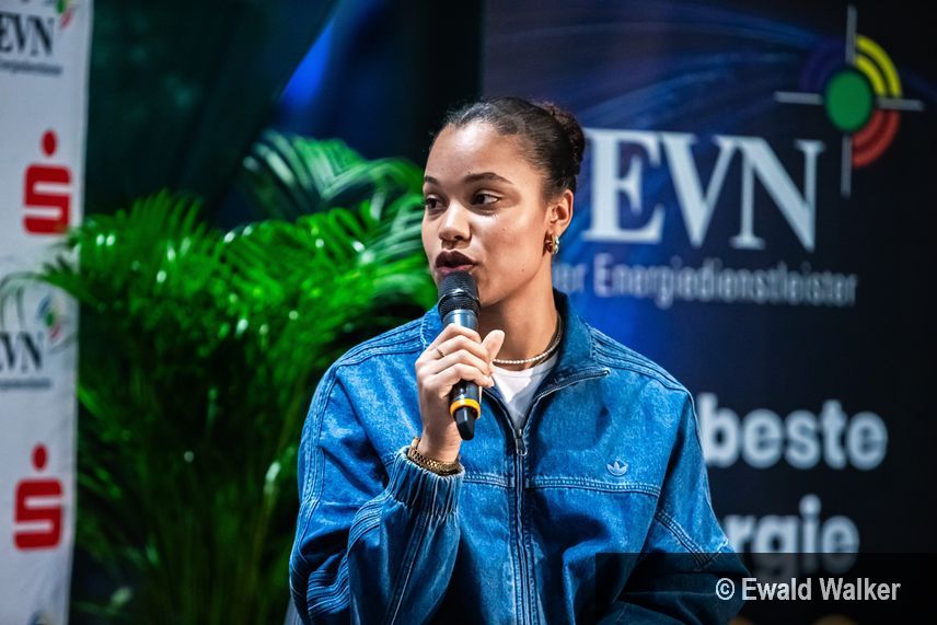 „Erfolge kann man nicht planen“, sagt Ogunleye, weshalb auch ihre Popularität unvorbereitet gekommen sei. „Ich kenne Yemisis Situation mit der großen Populartät natürlich auch“, merkt Kumbernuss an, „dafür hat man geschuftet und viele Entbehrungen hingenommen“. Man müsse aber lernen, ‘Nein’ zu sagen in vielen Situationen, gab sie ihrere jüngeren Kollegin einen Rat. Entscheidend sei immer, dass das Training weitergeht.