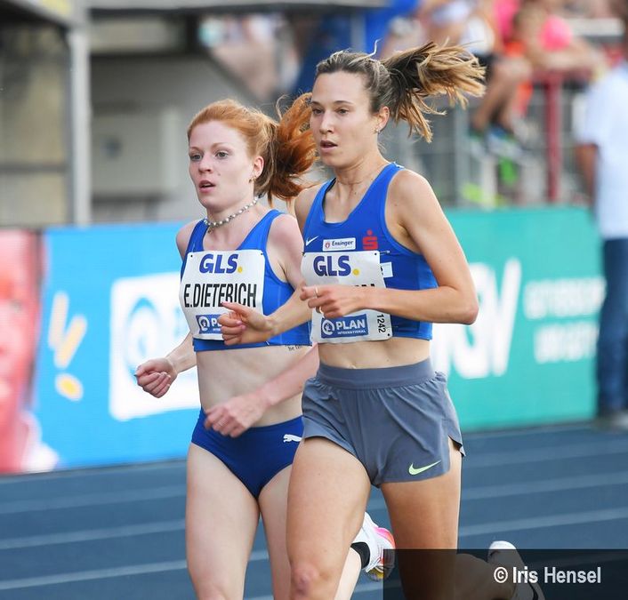 Am Ende wurde es ein Doppelsieg für Tübingen. Hanna Klein drehte an der Spitze ihre Runden, verfolgt, aber nicht angegriffen von Eva Dieterich. Nach 15:11,83 Minuten lief die 31-Jährige als Siegerin ins Ziel. Nach sechs Jahren eroberte sie damit ihren zweiten DM-Titel über 5.000 Meter, 2018 in Nürnberg hatte sie in 15:17,47 Minuten triumphiert. Es war das achtschnellste 5.000-Meter-Rennen in der Karriere von Hanna Klein. Eva Dieterich wurde für ihr starkes Rennen mit einer Bestzeit von 15:30,28 Minuten belohnt, sie schraubte ihren Hausrekord um mehr als sechs Sekunden nach unten. Svenja Sapper (leichtathletik.de)