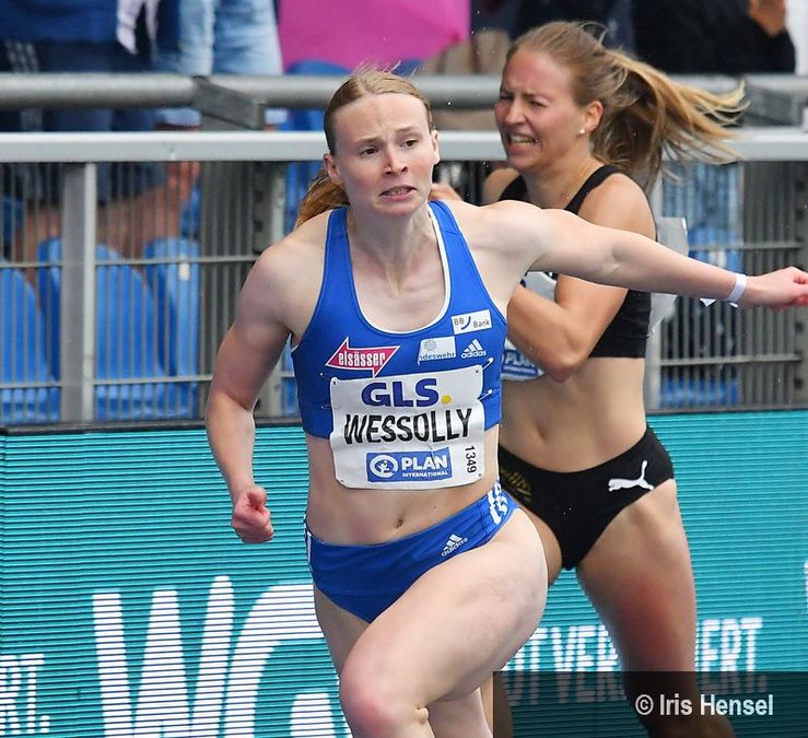 Wenige Stunden später ging Jessica-Bianca Wessolly den Finallauf zunächst etwas verhalten an und bog mit Lisa Marie Kwayie (Neuköllner SF) an ihrer Schulter auf die Zielgerade ein. Dann zeigte sie aber, dass sie die besten Spurtfähigkeiten des Feldes hat und siegte mit knapp zwei Zehntel Vorsprung in 23,18 Sekunden. „Eigentlich bin ich die Schönwetter-Läuferin. Ich kann dieses Wetter gar nicht haben", verriet sie anschließend lachend im ZDF-Interview. Hinter ihr und Lisa Marie Kwayie hielt Lisa Nippgen die auf den letzten Metern stark aufkommenden Konkurrentinnen in Schach. Mit 23,49 Sekunden holte sie sich verdient Platz drei im Regen von Braunschweig.
