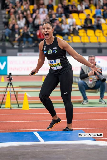 Das Kugelstoßen der Frauen verlief ganz zu Gunsten für Baden-Württemberg. Die Siegerin der Olympischen Spiele 2024, Yemisi Ogunleye (MTG Mannheim) sicherte sich auch hier den Deutschen Meistertitel. Ihr erster Versuch gelang ihr direkt so gut, dass er ihr den Sieg wie auch eine neue persönliche Bestleistung einbrachte: 20,27 Meter und damit aktuell zweitbeste Kugelstoßerin der Welt. Ebenfalls aufs Treppchen schaffte es Alina Kenzel vom VfB Stuttgart 1893. Alina erreichte mit einer Weite von 18,36 Meter die Bronzemedaille.