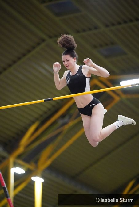 Es lag einiges an Wartezeit zwischen dem Einspringen und ihrem ersten Wettkampf-Sprung für Anna Hiesinger (LAZ Ludwigsburg), der dann auch noch nicht ganz passte. Im zweiten Anlauf meisterte sie ihre Einstiegshöhe von 3,80 Meter dann aber souverän und zeigte auch bei den nächsten Sprüngen ihre starke Form. Die Entscheidung über den Verbleib des Deutschen Meistertitels fiel bei 4,10 Meter. Ihre einzige im Wettkampf noch verbliebene Konkurrentin Lotte Gretzlar (USC Mainz) scheiterte im ersten Versuch, der auch zugleich ihr letzter war, denn sie hatte sich ihren dritten bei der vorherigen Höhe aufgehoben und gepokert. Die Titelverteidigung bereits in der Tasche übersprang Anna Hiesinger wie befreit die 4,10 Meter gleich beim ersten Mal. Anschließend ließ sie noch 4,25 Meter auflegen, an denen sie jedoch zweimal scheiterte und dann den Wettkampf beendete. Die neue Persönliche Bestleistung fällt dann an einem anderen Tag.