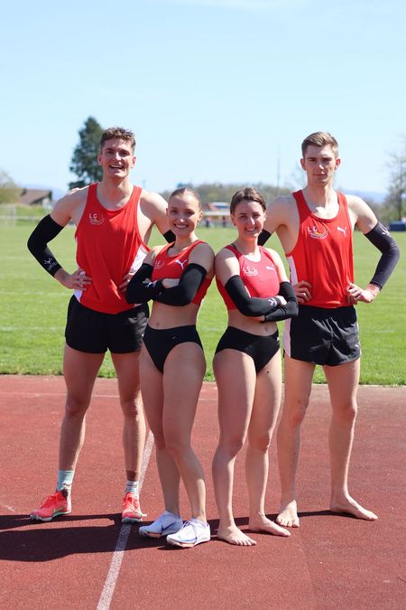 Mit viel Motivation und lautstarker Unterstützung ihres kleinen Fanclubs reisten Marvin Hock, Louisa Breuer, Robert Lahmann und Pia Ringhoffer am vergangenen Wochenende nach Uhingen. Ziel des Quartetts: Die Norm für die Deutschen Meisterschaften der Langstaffeln über die 4x400m Mixed-Distanz zu unterbieten. Im Rahmen der Kreismeisterschaften Langstaffeln überzeugte das LGR-Team mit einer starken Gesamtleistung – und erreichte dieses Ziel eindrucksvoll.