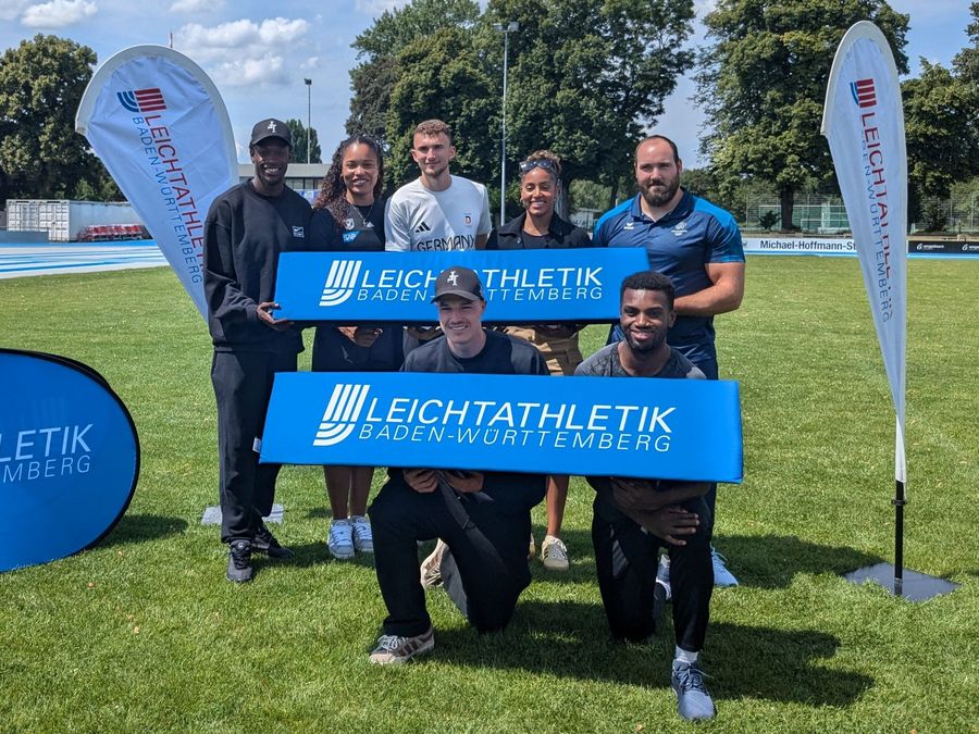 Vier von ihnen trainieren regelmäßig am Leichtathletik-Bundesstützpunkt in Mannheim: Die Weitspringer:innen Malaika Mihambo (LG Kurpfalz), Mikaelle Assani (SCL Heel Baden-Baden) und Simon Batz sowie Kugelstoßerin Yemisi Ogunleye (beide MTG Mannheim). Die Leichtathletik Baden-Württemberg hat sie und ihre Trainer:innen Ulli Knapp, Udo Metzler, Sebastian Bayer und Iris Manke-Reimers nach Mannheim eingeladen, um vor der Abreise gute Wünsche und ein kleines Präsent mit auf den Weg zu geben. Malaika Mihambo und ihr Trainer Ulli Knapp mussten ihre Teilnahme kurzfristig absagen.