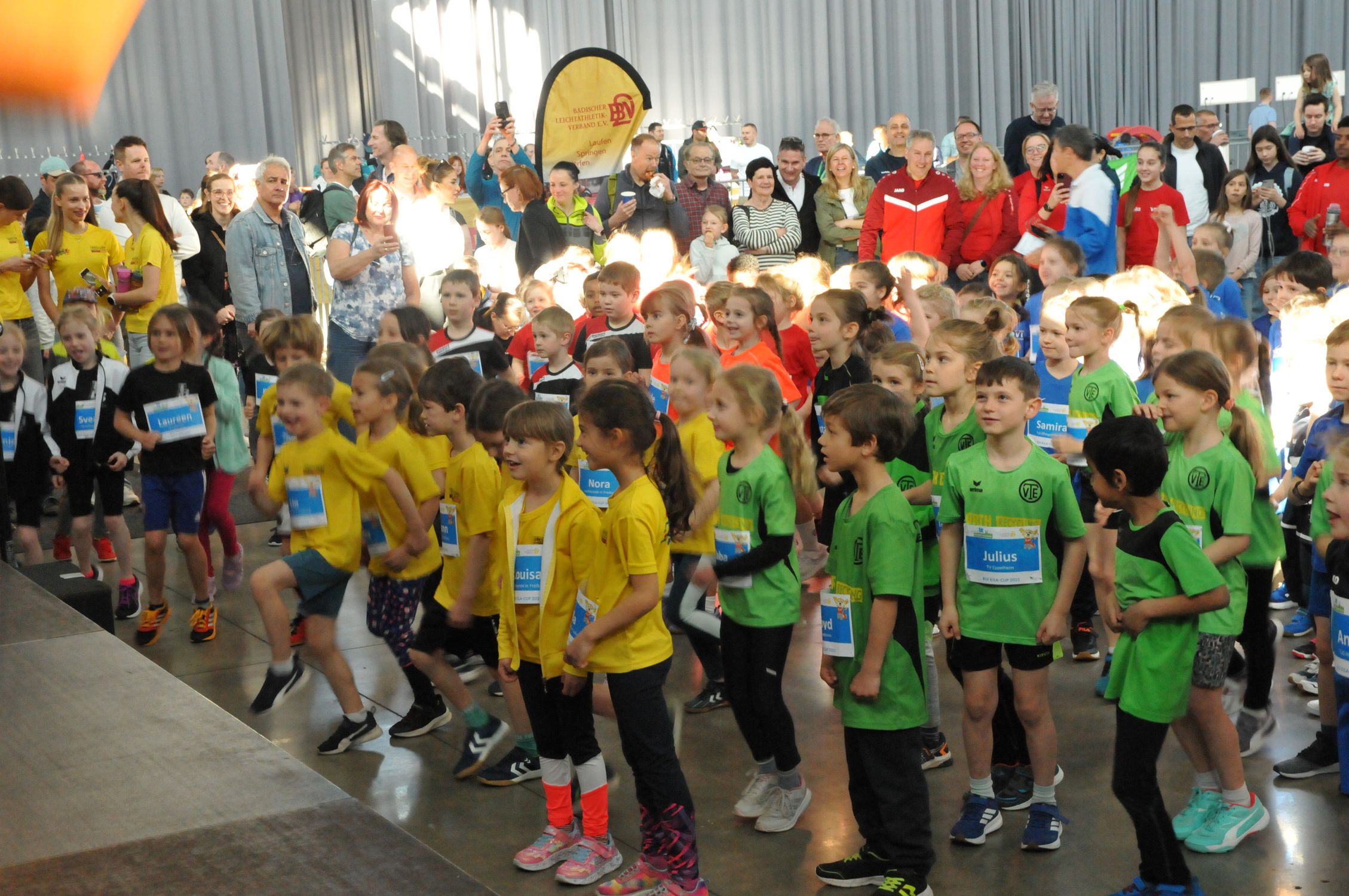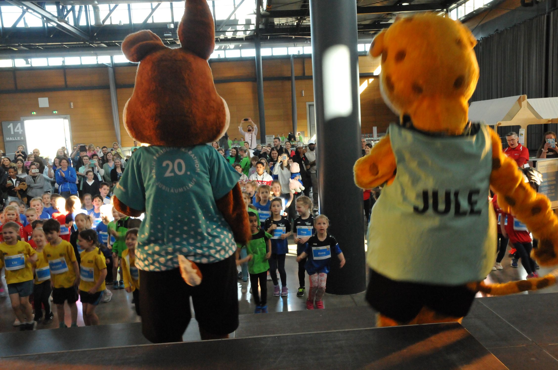 Die Siegerehrung war ein besonderes Highlight: Es gab Medaillen und kleine Preise für alle Teilnehmenden – und man sah den Kindern die Freude und den Stolz über ihre Leistungen deutlich an. Unterstützt und angefeuert wurden sie dabei nicht nur von Eltern und Betreuenden, sondern auch von den fröhlichen Maskottchen, die für zusätzliche Stimmung sorgten, darunter auch das Maskottchen JuLe des Deutschen Leichtathletik-Verbands. Mit insgesamt 37 teilnehmenden Teams und knapp 400 Kindern verwandelte sich die SICK-Arena in ein Fest der Kinderleichtathletik.