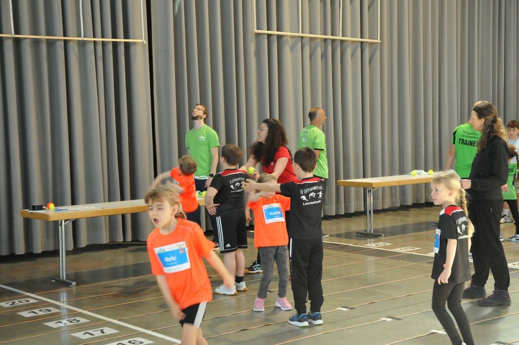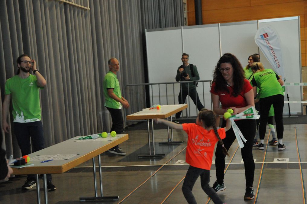 Doch auch abseits des Wettkampfs war einiges geboten: Am Sonntag hatten alle neugierigen Besucher:innen – ob Teilnehmende oder nicht – die Möglichkeit, Kinderleichtathletik hautnah zu erleben. Unter dem Motto „Laufen, Springen & Werfen – Kinder(leicht) bewegt“ standen die Stationen allen offen. Mit einem Laufzettel in der Hand ging es von Station zu Station, um fleißig Stempel zu sammeln. Wer fünf von sechs Stationen absolvierte, konnte sich über das DLV-Kinderleichtathletik-Abzeichen freuen und wer noch Energie hatte, durfte natürlich auch eine zweite Runde drehen. Besonders schön: Auch einige Eltern ließen sich von der Begeisterung ihrer Kinder anstecken und wagten das eine oder andere sportliche Duell. Insgesamt 300 Kindern liesen sich das Angebot nicht entgehen und sammelten (erste) Erfahrungen in der Kinderleichtathletik.