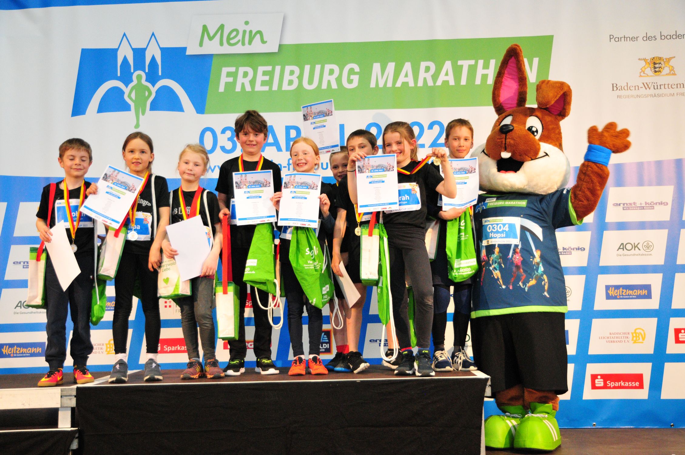 Im Rahmen des MEIN FREIBURG MARATHON wurde am Sonntag, 03.04.2022 ein umfassendes Kinderleichtathletikprogramm für alle interessierten Kinder angeboten. Ein DLV-Kinderleichtathletik-Abzeichen konnten sich die Kinder am BLV-Infostand abholen, wenn sie zuvor alle KiLa-Stationen gemeistert und sich einen Stempel für ihre Stempelkarte gesichert hatten. Insgesamt wurden am Sonntag 250 DLV-KiLa-Abzeichen an die Kinder verteilt.